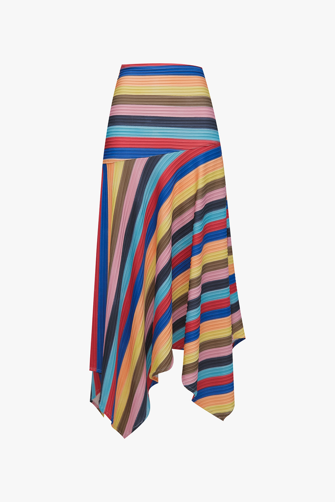 De silueta midi asimétrica en puntas, es una pieza que combina actitud, estilo y movimiento en cada paso. Su cintura ajustada realza la figura mientras sus cortes irregulares le dan ese toque único y original tan S de Sixxta.